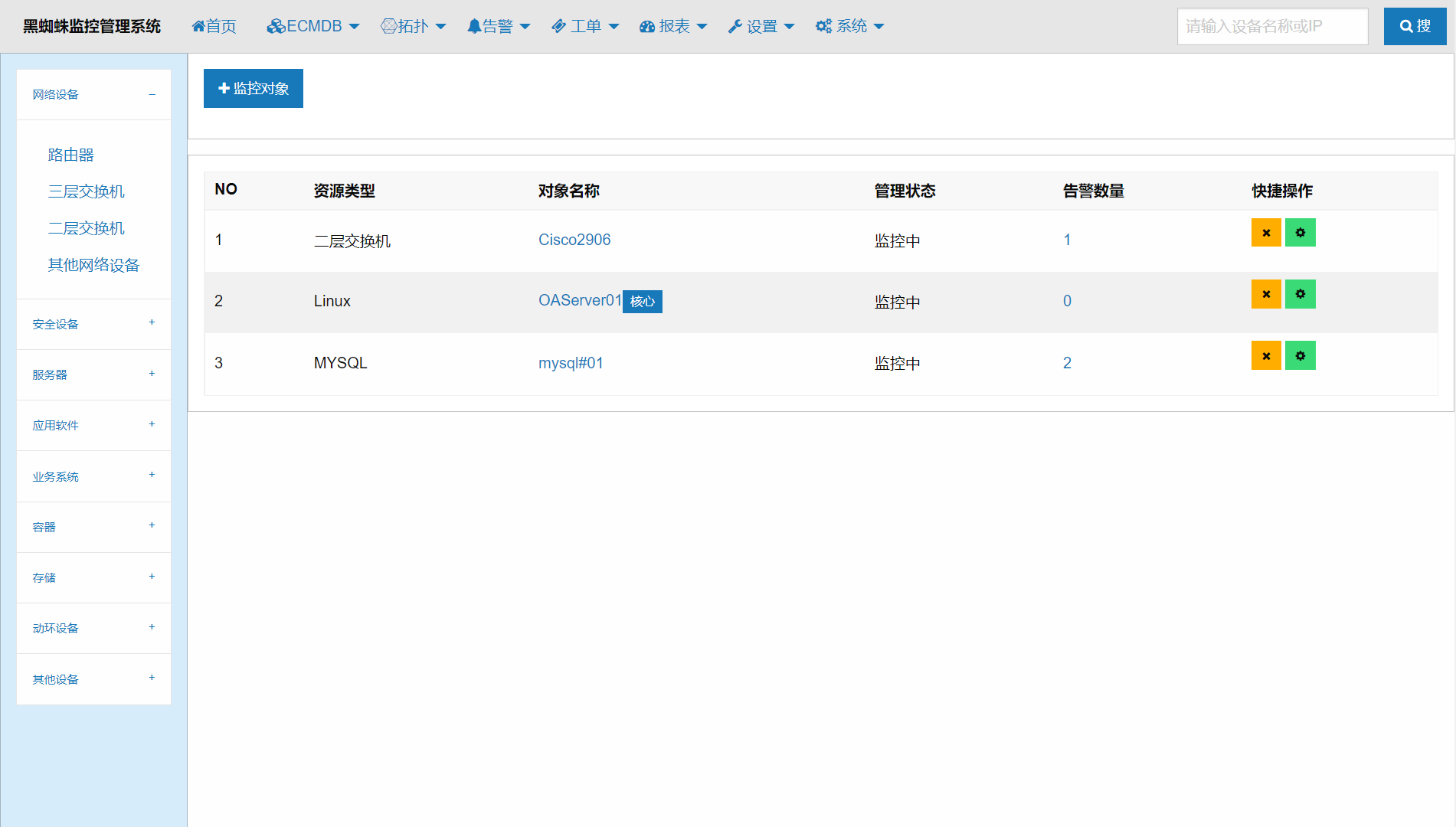 支持市面主流設(shè)備,應(yīng)用等監(jiān)控對象的綜合監(jiān)控